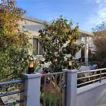 Die Villa bietet einen Essbereich im Freien mit Ausstattung zur Kaffee- & Teezubereitung. Zur Selbstverpflegung stehen auch ein Wasserkocher, ein Kühlschrank und ein Toaster zur Verfügung. Die Unterkunft liegt in einer Entfernung von 5 Gehminuten vom Restaurant Oneira Glyka pithari und bietet Gerichte der französischen Küche an. Die Bushaltestelle Agios Loukas befindet sich direkt an der Villa und bietet alternative Transportmöglichkeiten in der Umgebung. Diese Villa verfügt über einen Innenhof und die Gärten sowie eine sonnige Terrasse mit Blick auf den Innenhof.